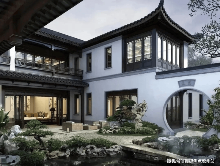 约500-1674㎡独栋别墅、约315-679㎡合院别墅,岭南至美人居,中式风格呈现;