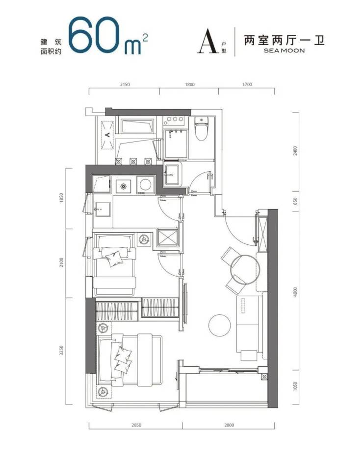 (4)公寓60㎡两室两厅一卫,总价419—546万,单价7万-9.1万;