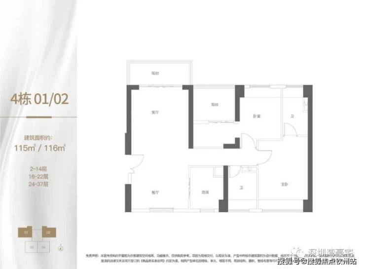 2-14层:一层4梯8户 其中四户是94㎡的两房,四户是133㎡的三房