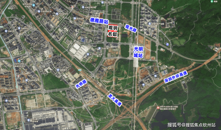 光明城高铁站,也是广深港高铁线和赣深高铁进入深圳的第一站,周边还邻近观光路,光侨路,深圳外环高速,龙大高速等主要交通要道,可快速到达深圳中心区。