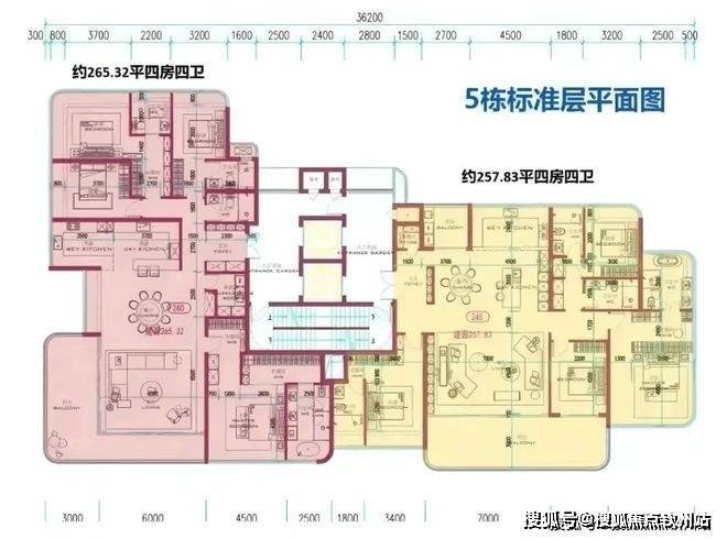 其中2、3、5、8、9栋采用板楼设计,2T2户,约193-253-332㎡大平层。