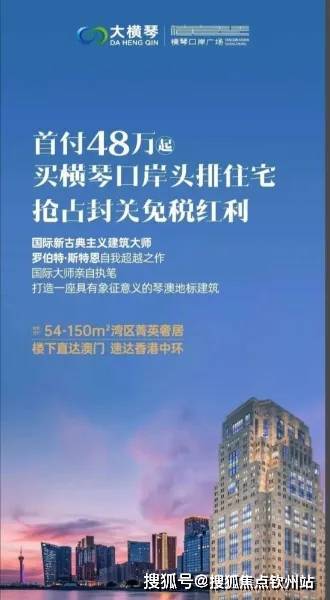 3.首付48万起买横琴口岸澳门大学旁住宅 看山看海看澳门,年租金60000+