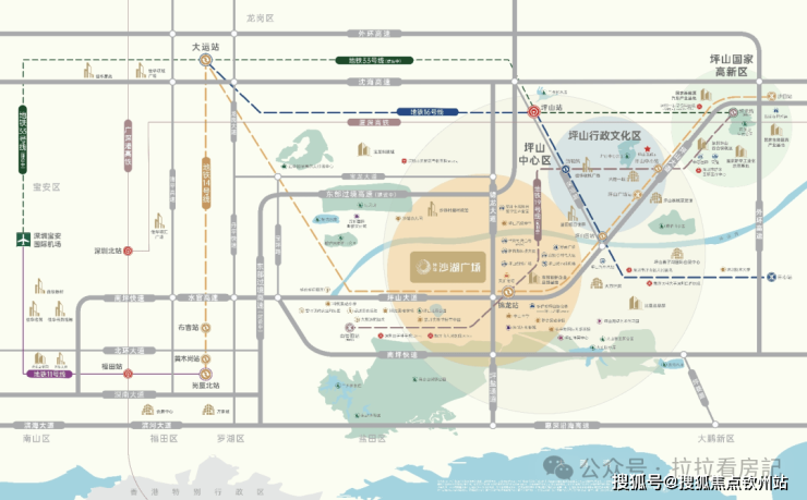 地铁:紧邻地铁14快线坪山门户站——锦龙站(约600米),12站福田岗厦北。周边临近地铁16号线(14号线一站直达坪山围站换乘)、地铁19号线(规划中)、地铁33号线(在建)。