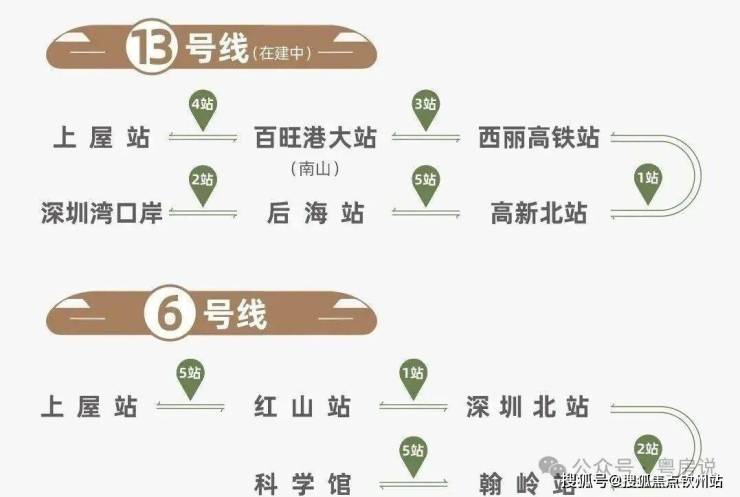 13号线据深圳交通局官网称将在2025年年底开通,该线路也是深圳3条快线之一,号称“深圳科技核心大动脉”,从南到北,串联深圳湾总部基地、后海中心、南山科技园、西丽高铁枢纽、留仙洞总部基地、白芒科研机构、宝安石岩科创城等多个重要片区。沿线华为、中国电子、腾讯、阿里等500强汇集,大批高新人才聚集,形成科创阵地,势必引领片区经济崛起。全程时速120公里,4站到南山百旺港大站,7站到南山西丽高铁站,8站到高新北。