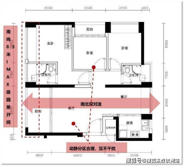 C02、03户型:89㎡三房两厅两卫,西南朝向