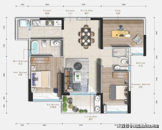 3.7m景观阳台,1.8m进深