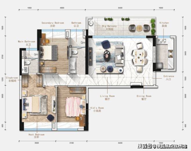 大阳台配置,6.4m开间,1.8米进深