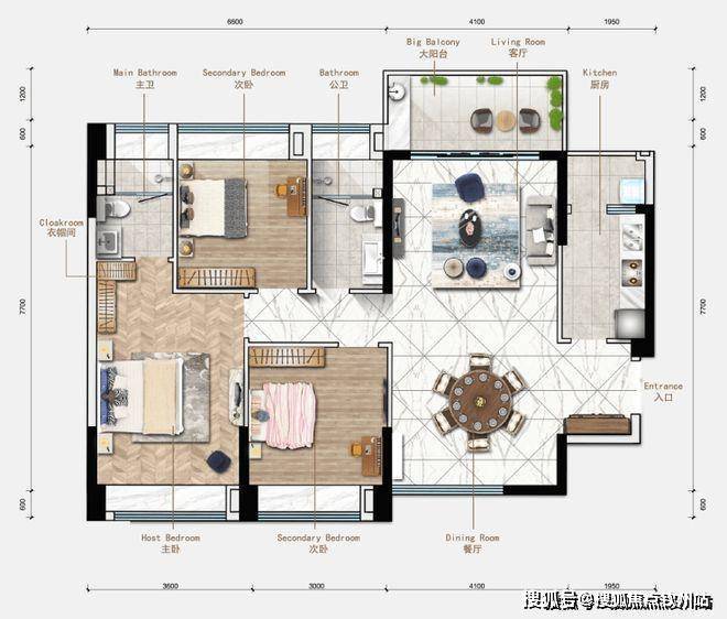 双套房设计,满足多人口家庭生活便利