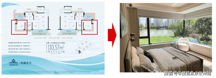 全户型主卧配有270度IMAX环湖飘窗,俯瞰三百亩中心湖景,让湖景融入生活日常