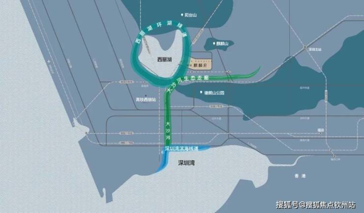【一方湖山大境】三山环抱,一湖为邻,西丽湖一线景观资源,千万顷珍稀原生资源,造就一席湖山大境;14公里西丽湖环湖栈道+13.7公里大沙河生态走廊+34公里深圳湾环湖栈道,汇聚城市自然资源标地,山河湖海城市绿脊.
