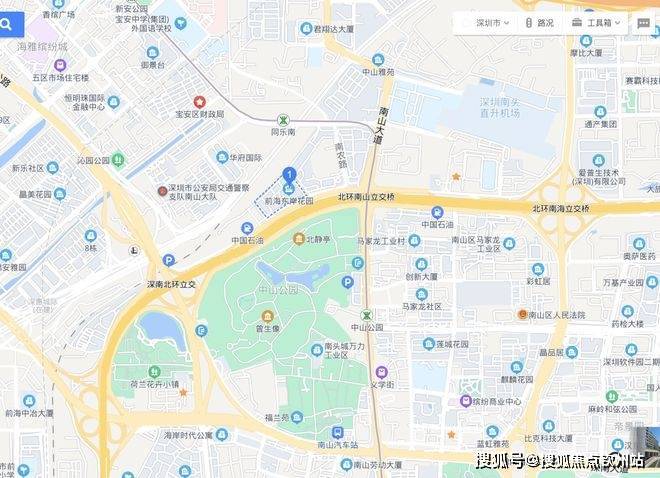 项目南侧是南山区中山公园与项目相隔北环大道,通过人行天桥连接。中山公园是深圳最大、历史最悠久的城市公园。占地面积达49万平方米(相当于4个豪方天际和4个前海东岸占地大小),定位为城市形象名片,里面有儿童娱乐场所等休闲设施,是周末、空闲时、晚饭后散步游玩的好去处。