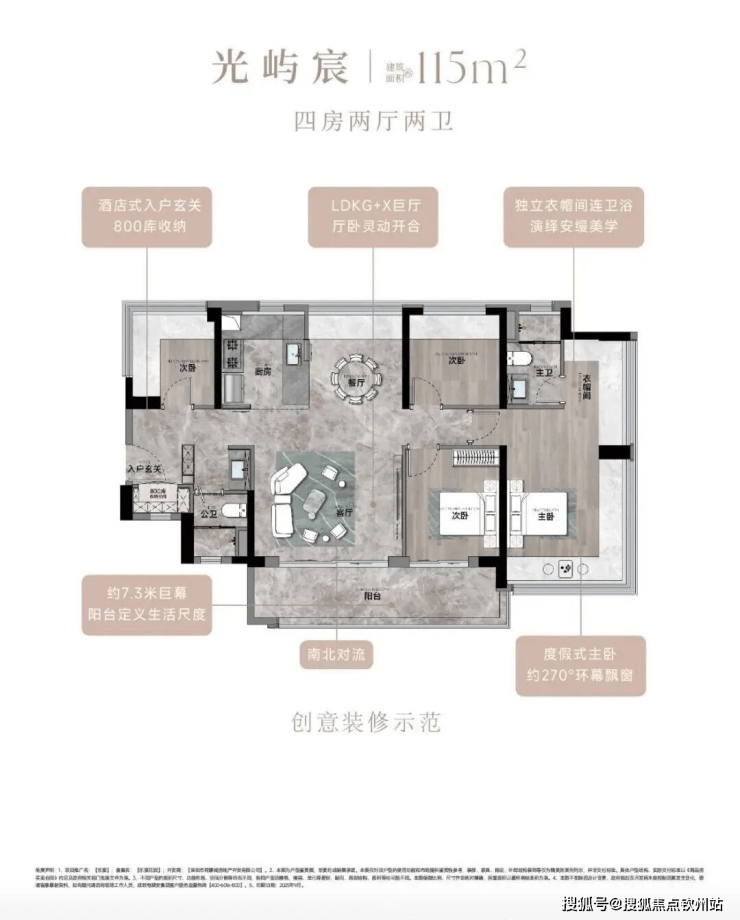 3、得房率高:非超高层,总高不超100米,无避难层,3梯6户,新规建筑,户型得房率100%左右,83平做三房两卫,99平做四房两卫,全南向户型,日照采光充足;