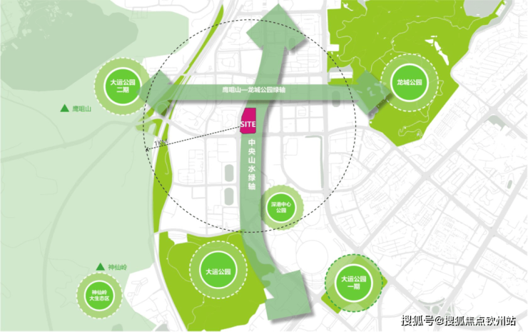 •地铁:紧邻地铁16号线龙城公园站(约600米),2站大运枢纽。未来地铁深惠城际(建设中)在此交汇,4站深圳北枢纽、5站西丽、8站前海;
