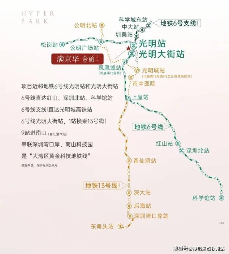 3地铁:邻6号线光明站/光明大街站、6号线支线 (在建中)、13号线 (在建中)