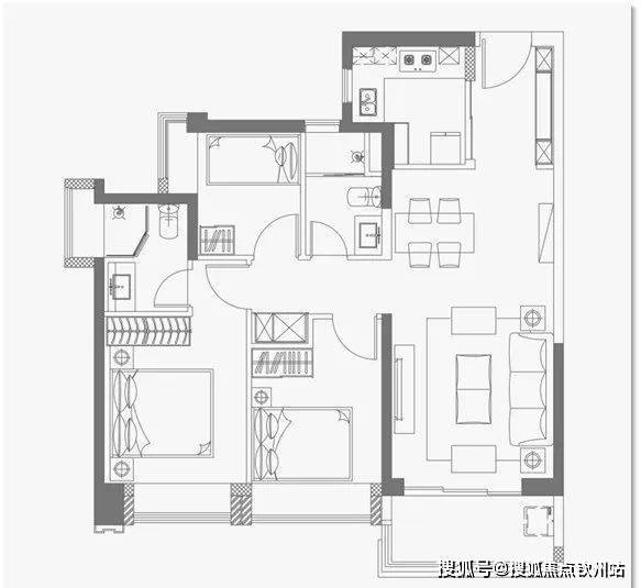 117㎡四房两卫:总价615-645万元(高层横厅户型)