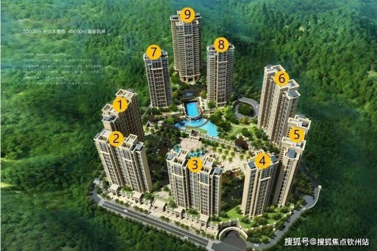 小区依山而建,拾级而上,围合式纯板楼,双泳池,七层车库,11米超豪华五星级大堂