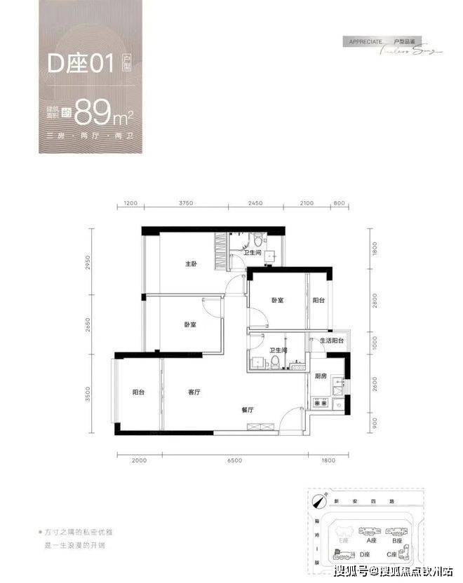 【梯户比】A-C座2梯4户,D座2梯5户