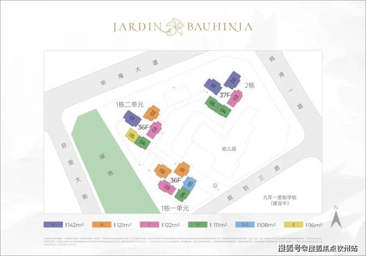 小区有485套纯住宅,车位595个,容积率5.14,共有三栋住宅,每栋做了36-37F高的4梯5户设计,每户都有专梯入户空间
