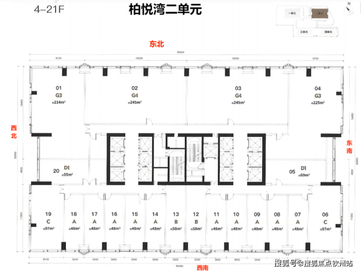 梯户比:公寓5梯24户 商办6梯20户