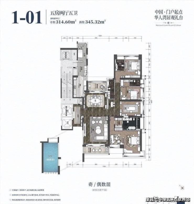万菱·情侣湾1号坐落于黄金海岸线,抬头即可观赏蓝天白云与碧波海景,海天一色。万菱·情侣湾一号,每栋总高39层,每层仅2户,项目仅有148户的稀缺珍品 :194-346㎡大平层海景空墅