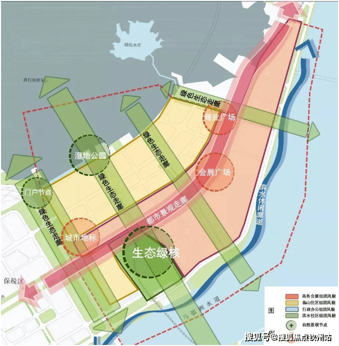 与澳门隔江相望的十字门,被定位成商务区,承载着珠三角地区崛起的伟岸蓝图。十字门商务区的发展是依托于粤港澳之间的紧密合作,服务于珠海核芯城市建设以及方便在横琴实施国家战略,这里是高端商务服务区,与横琴片区商务区共同构成组合式综合型CBD。核芯功能包括会展商务、企业总部、商务办公、商业配套、酒店娱乐、高端居住、口岸服务等。