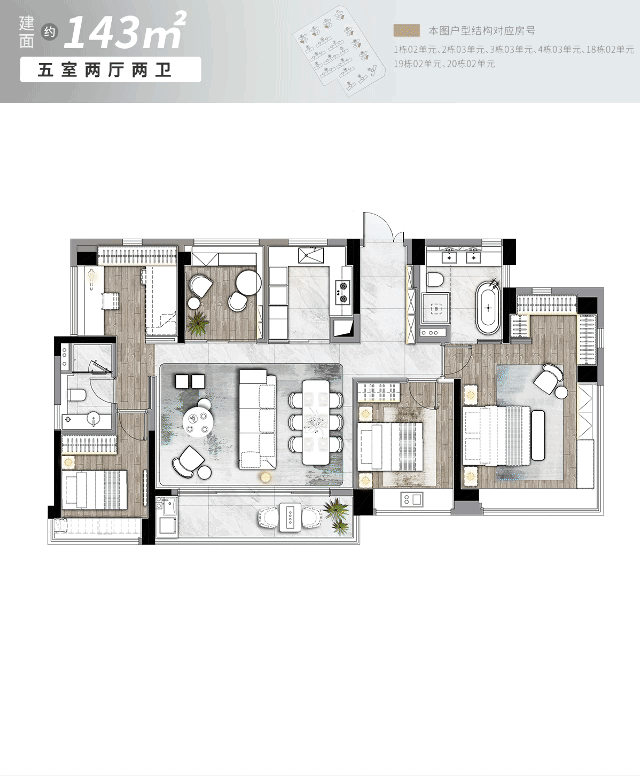 建面约129㎡和143㎡两个户型,都做到四开间朝南,搭配6米左右开间的超大景观阳台、270°主卧转角飘窗,仅仅这一扇窗、这面景,就圆满了无数高净值群体对山海连城的生活梦想。