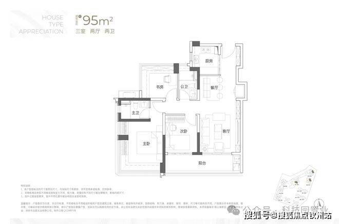 东南或西南朝向以及西北朝向,有3种户型格局,但整体差异并不大,都是横厅设计,阳台也都非常宽敞。主要核心区别是阳台的设计,这应该是为了贴合楼栋朝向、景观所做的调整。