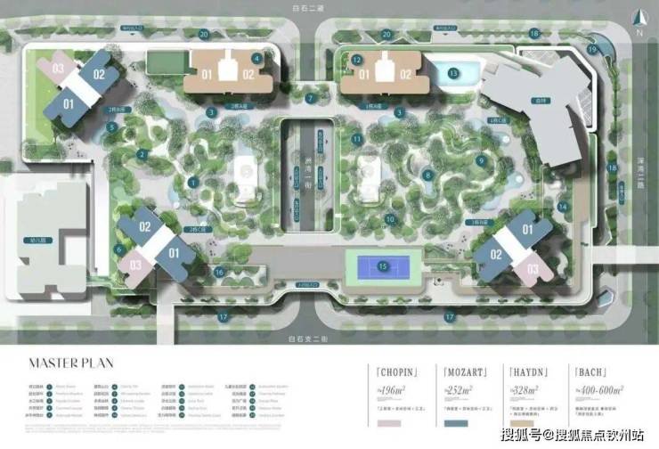 户型面积段设计为196-252-328㎡3-4房和400-600㎡顶层复式