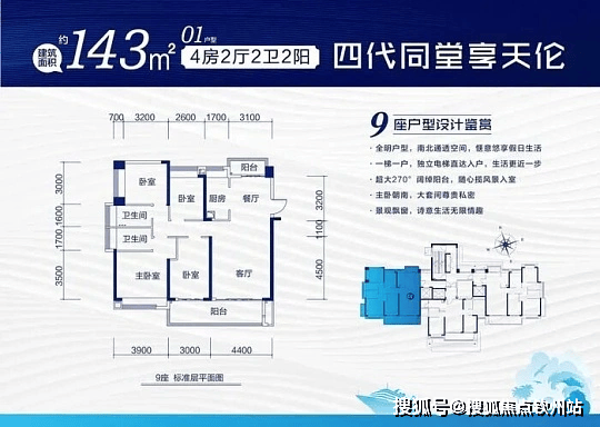 · 143㎡4 房:南北双阳台 + 双套房设计,改善舒居之选;
