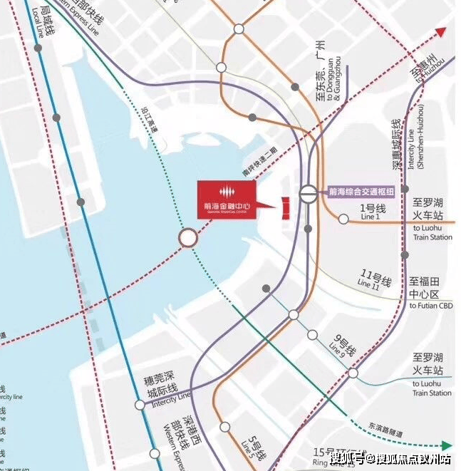 前海湾综合交通枢纽,目前是亚洲最大的交通枢纽,与项目无缝对接;