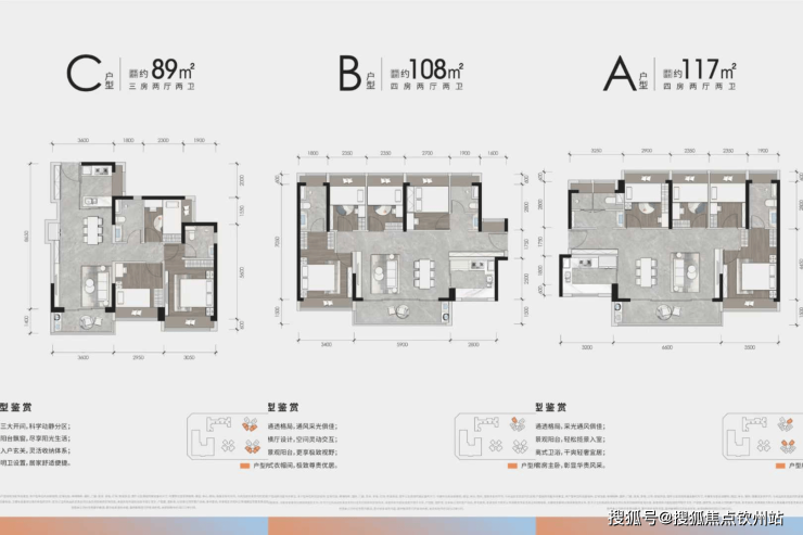 108-117㎡四房:总价514万-609万,单价4.5万-5.2万/㎡