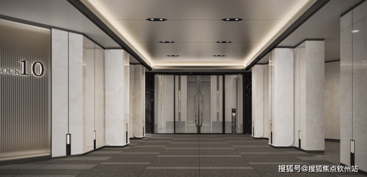 创新采用“无风雨归家动线”,以五星级酒店礼序为蓝本,将车行入口隐于8米高金属格栅景墙后,通过悬浮雨棚、镜面叠水与社区大堂构成三重空间序列,实现全天候尊享归家体验。