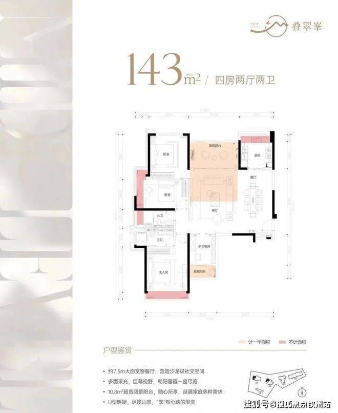 城市中心罕见2.0容积率,纯粹豪宅规划尺度,营造疏阔的建筑空间。叠翠峯南北坐卧,藏风聚气,于半山高度,360°全无遮挡,推窗即远眺城市与山,前后千米无楼间距遮挡,定义半山顶豪物业典范。