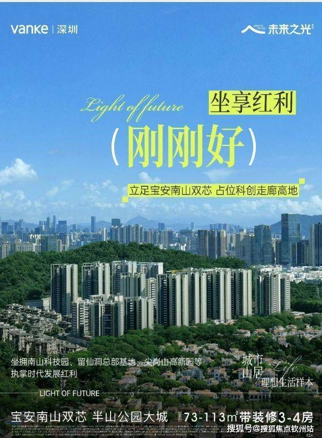 万科未来之光是一个位于深圳市宝安区新安街道广盛路与广泰路交汇处的纯居住大盘,项目总建筑面积约30万平方米,整体规划科学合理,全盘容积率为2.91,提供了极高的居住舒适度。作为万科与深圳安居联合开发的项目,它位于宝安尖岗山豪宅区,周边环境优美,自然生态资源丰富。