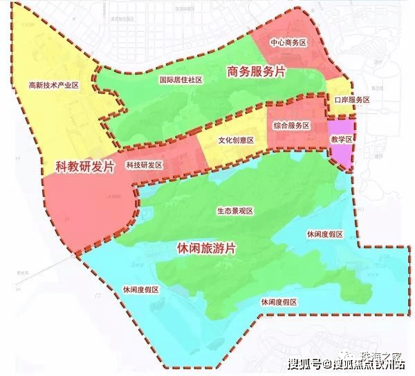 横琴新区整体是划分为三大片十大功能区,其中三大片分别是商务服务片、休闲旅游片和科教研发片。