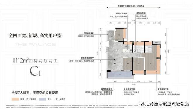 设计的是竖厅格局,LDKB一体化,客厅270°采光设计,S墙设计预留冰箱卡槽位,动静分区,U型厨房,卫生间干湿分离,得房率95-101%(包含赠送),西北朝向看科学公园景观。光明首创客厅270度采光视野+主卧270度转角无柱飘窗+卫生间没有上下水管设计+科学公园开阔视野。