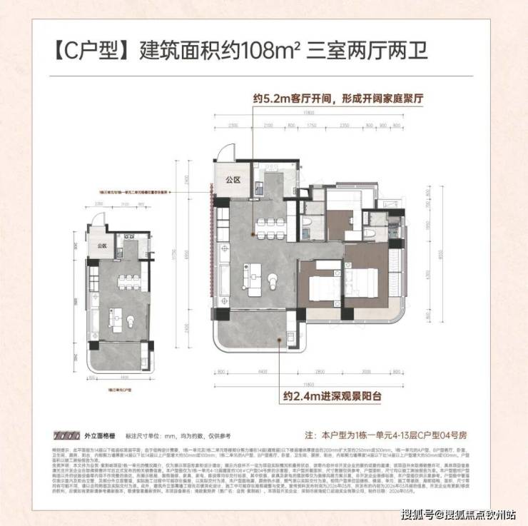 层高3.1米,3梯4户,全铝板+玻璃幕墙外立面(弧形线条设计),得房率约95-96%。小区内部配置泳池和泛会所。