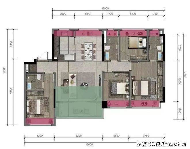 >双主卧套房设计,起居方便,大大缩短生活动线