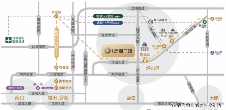 地铁:紧邻地铁14号快线坪山门户站——锦龙站700米(已通车),12站福田岗厦北。地铁16号线(预计2022年内通车)、地铁33号线(在建)