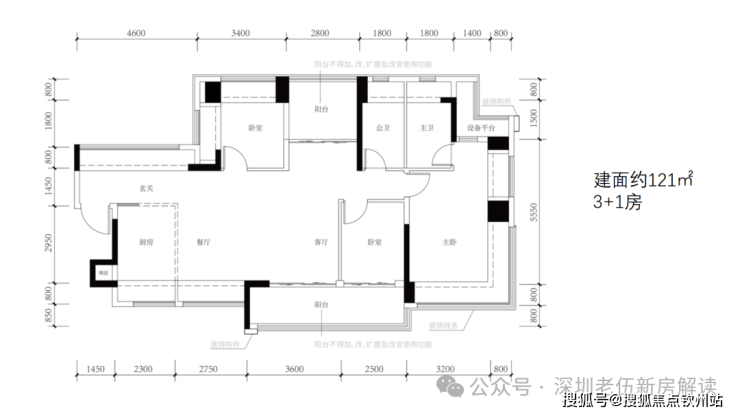 三、建面约121㎡户型:堪比旧规140+㎡户型