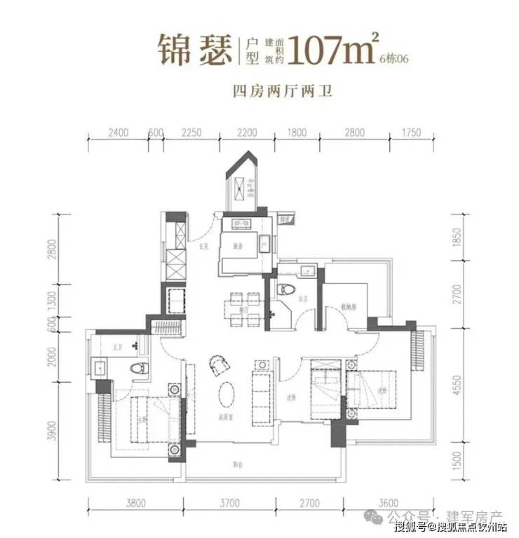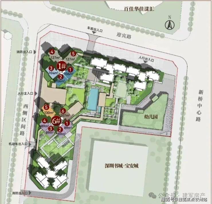 首推6栋产品有88-89㎡ 3房2厅2卫,106-127㎡ 4房2厅2卫户型,总高16层,2梯6户设计,全朝南向