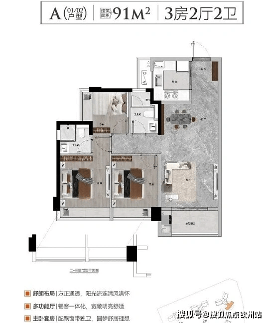 · 建面约90㎡三房两卫(高性价比)