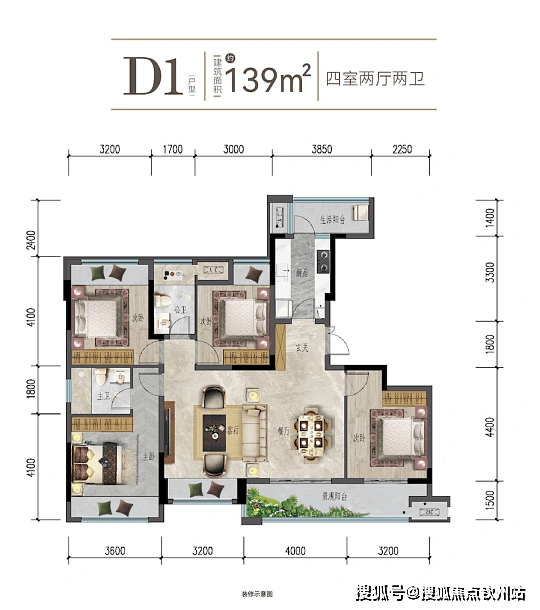 · 建面约140㎡四房两卫(宽境平层)