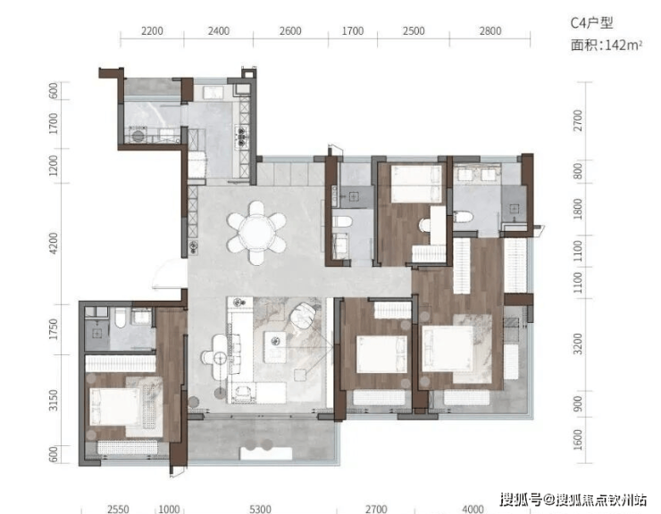 建面约142㎡ 四房三卫 | 品质生活进阶