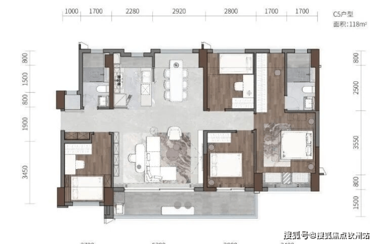 4+1灵动空间与双套房设计,满足多代共居与品质改善