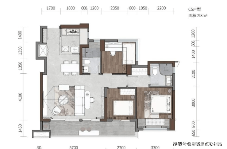 建面约98㎡ 三房两卫 | 成长家庭优选