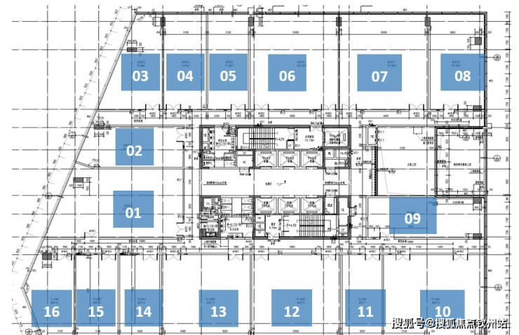 标准层的建筑面积约为2426平方米,总计包含16个办公单位,每个单位的产权面积介于100至246平方米之间。