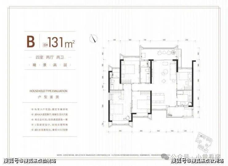 改善家庭可以重点看131㎡的四房两厅两卫,总价 500-520 万元,均为南北对流设计。