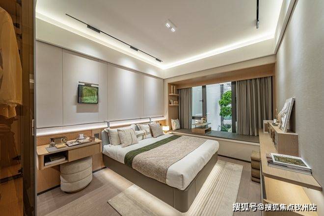 而且主卧做到套房设计,空间够大,1.8米的大床轻松放下,改善大户型的尺度感,也能在此找到。