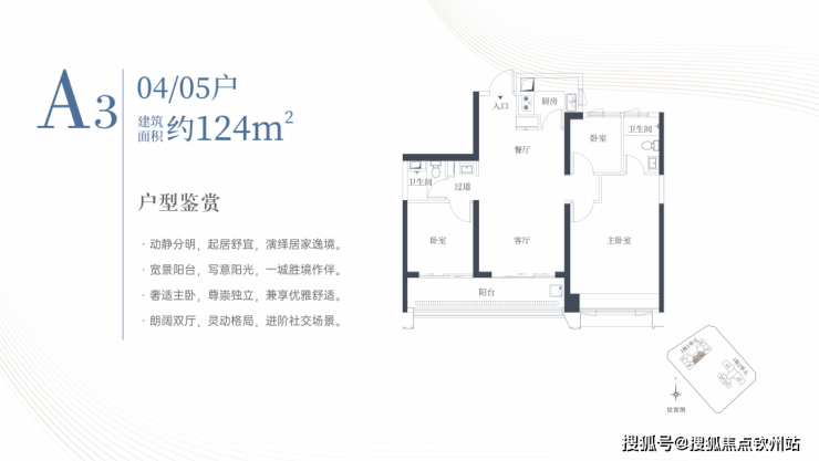 1栋一单元A3户型:面积约为124㎡
